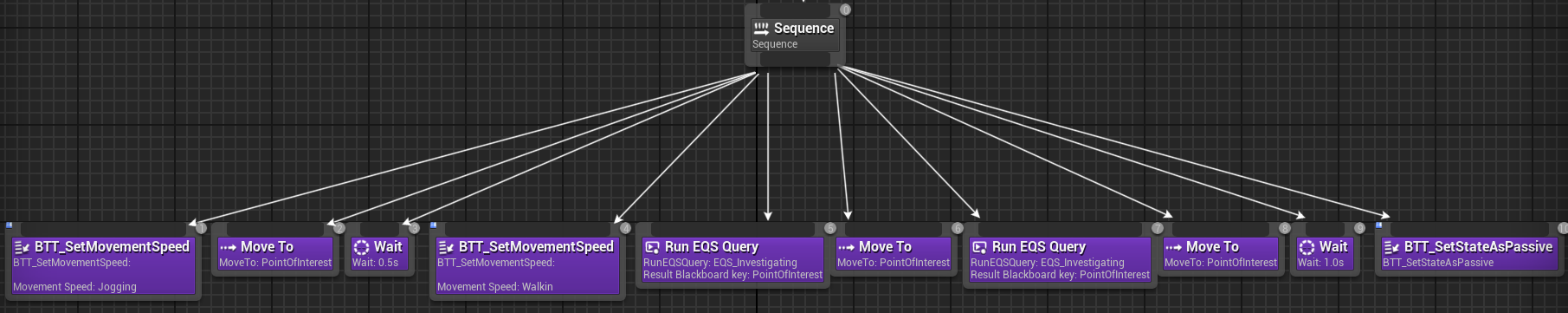 Environment Query System: Or “EQS” is very customizable system that lets an actor ask where to go based on certain tests. This can be perfect for very specific behaviour, but when set up poorly can be very heavy for performance. This EQS can be used in a behaviour tree to create possible locations and you can then even choose if it chooses the best solution always or maybe one out of the top 5% for example, creating some more organic decisions at times.