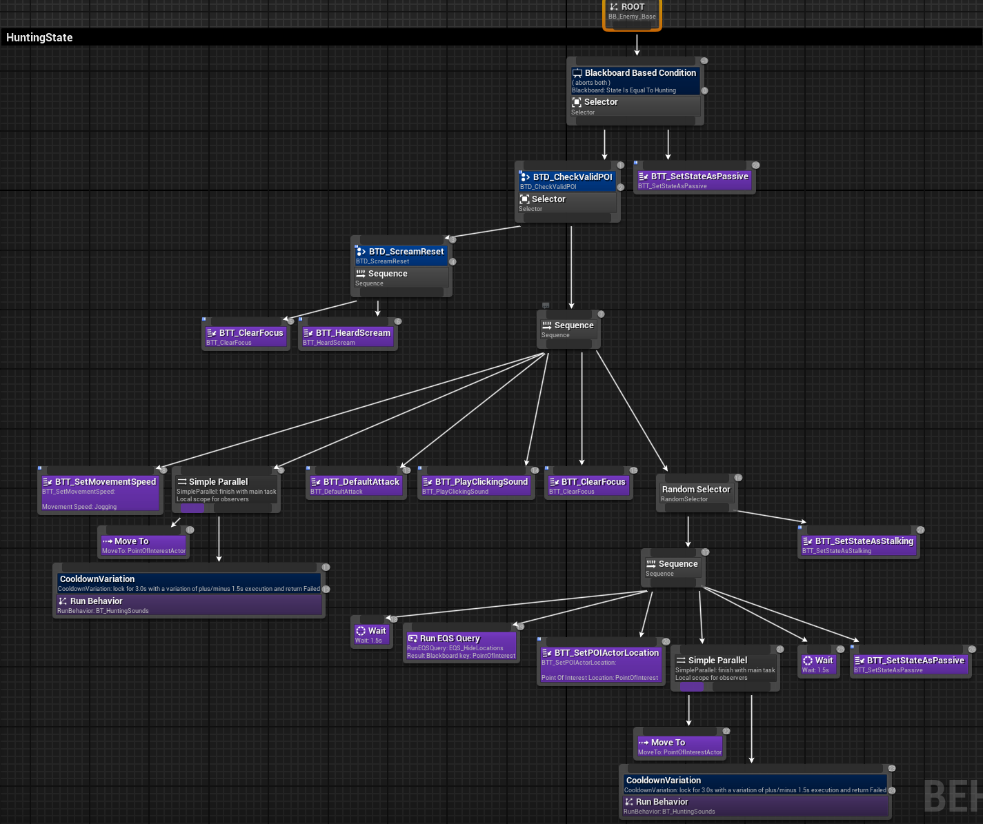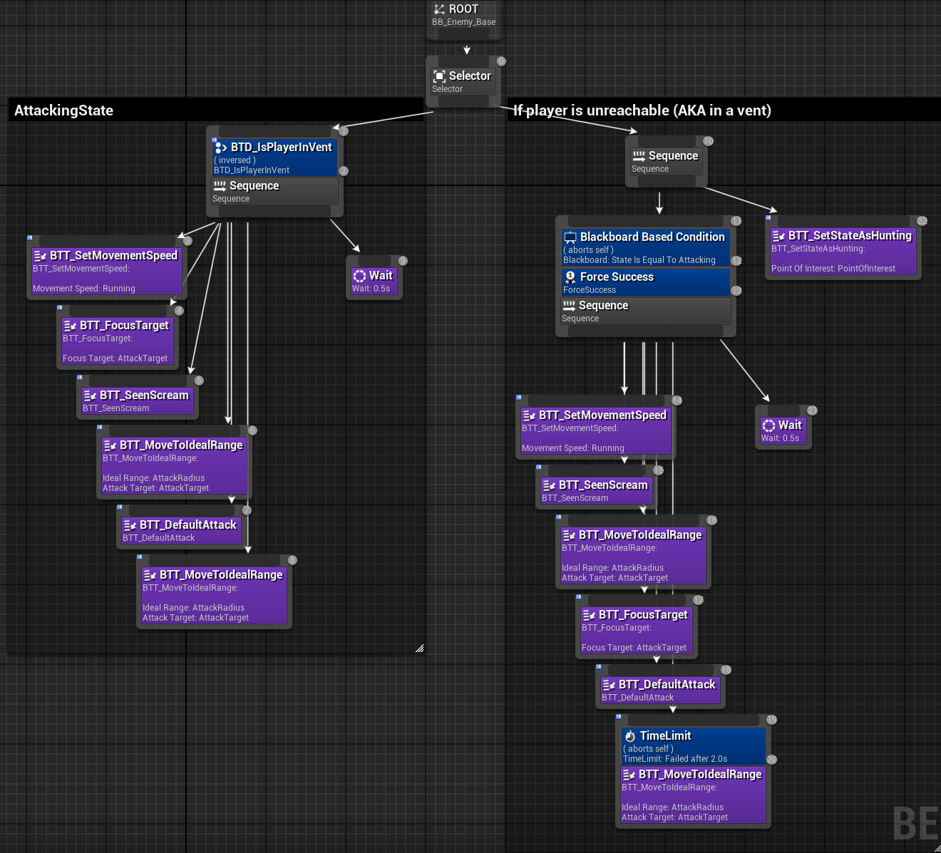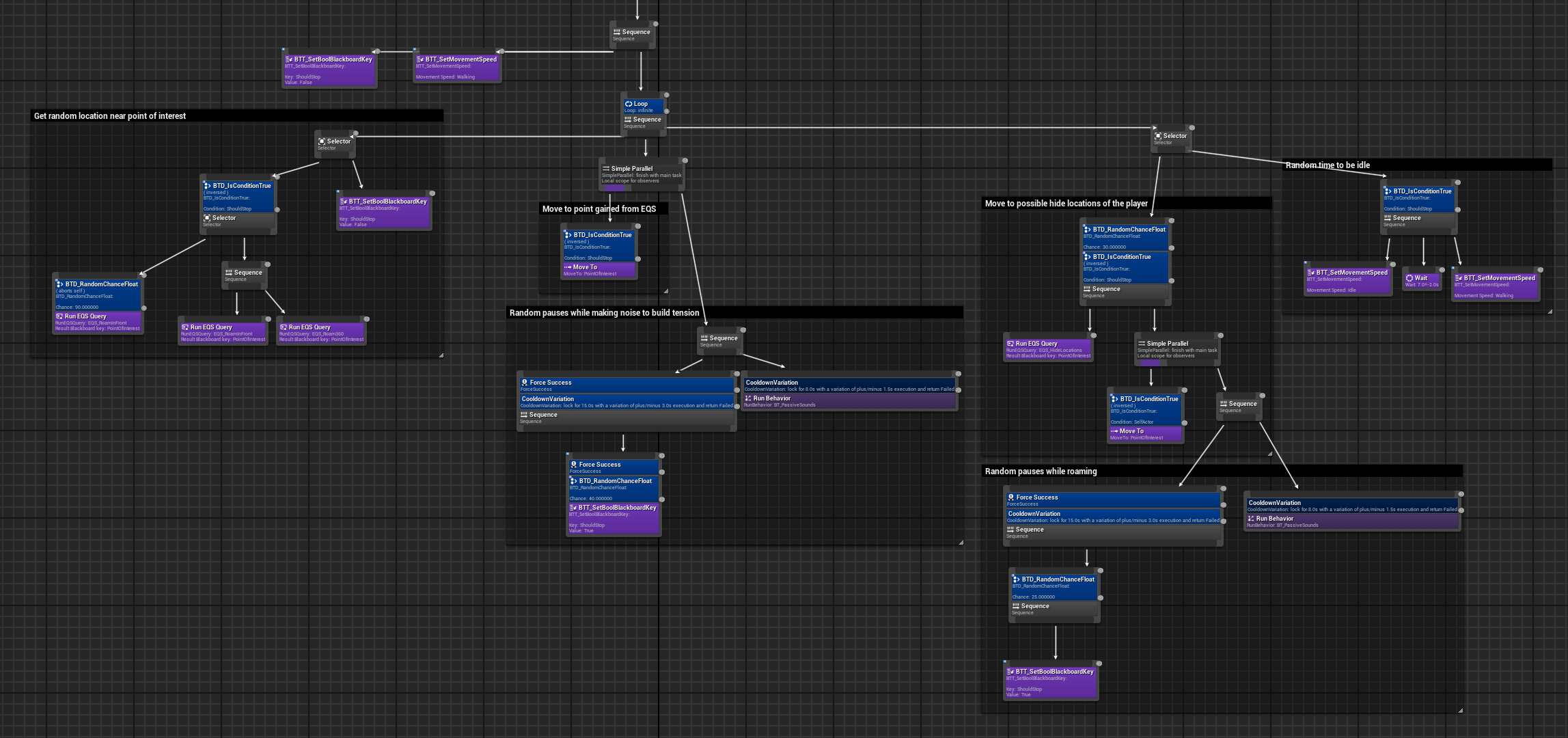 Some screenshots of the behaviour tree and how it grew throughout development.